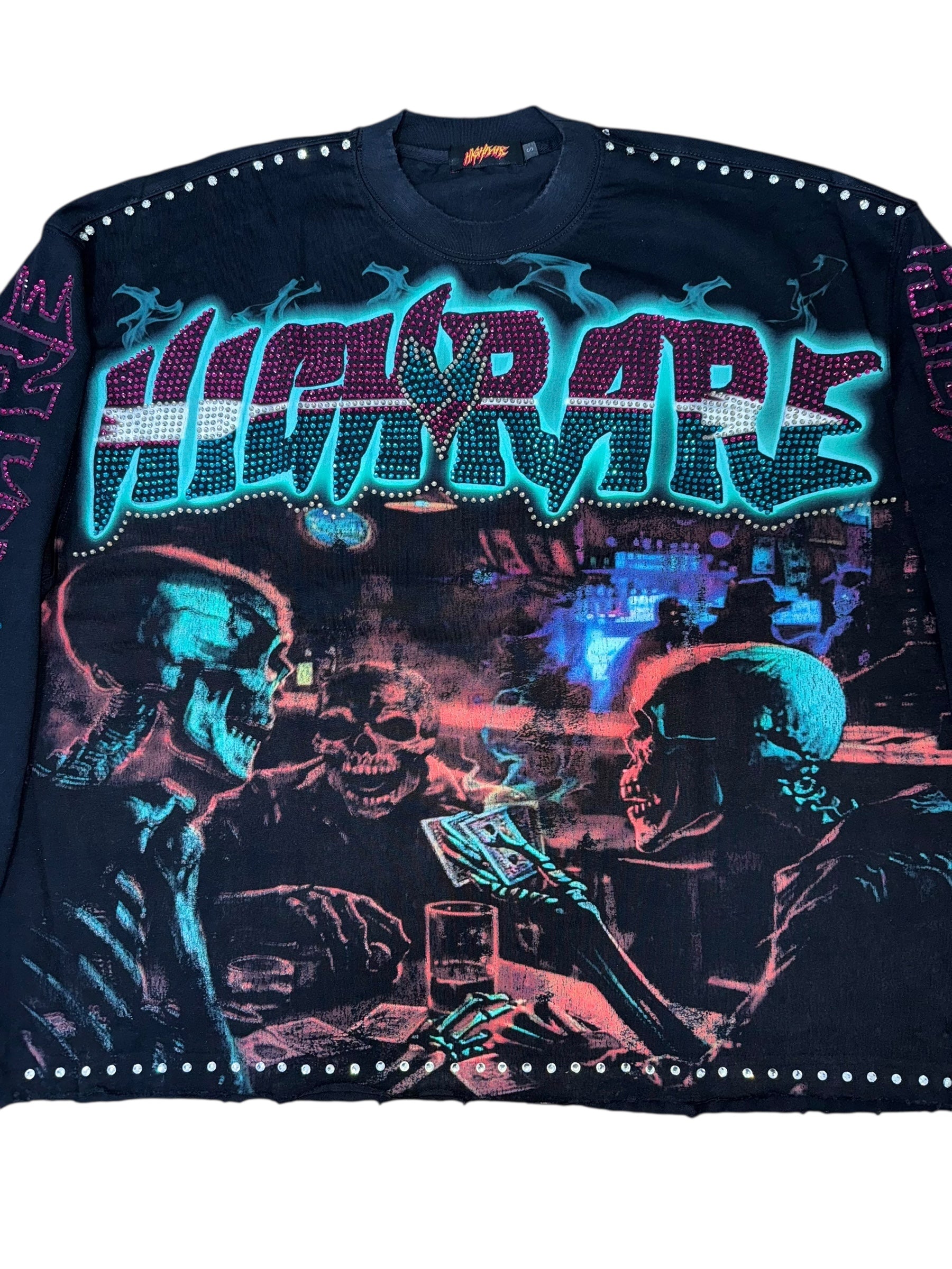 “LOVE IS A GAMBLE” LONG SLEEVE RHINESTONES